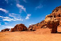 Indiaanse bouwruïne van rood zandsteen op het Navajo-reservaat in Arizona, VS