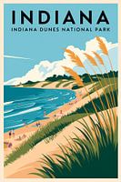 Een schilderachtig uitzicht op de kust ontvouwt zich met zachte duinen die overgaan in sprankelend water. De warme tinten van de zon en de koele blauw- en groentinten creëren een harmonieuze sfeer. Ideaal voor de woonkamer, waar de kijker wordt omarmd door het vakantiegevoel en de zintuigen worden uitgenodigd om te ontspannen.