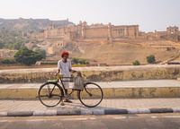 Indiase man met zijn fiets voor Amber Fort van Teun Janssen