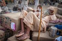 Indiase slapende pelgrim op het station van Haridwar in India. Wout Kok One2expose