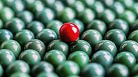 Deze afbeelding toont een enkele rode knikker die sterk afsteekt tegen een groene achtergrond en individualiteit en succes in de zakenwereld symboliseert. De rode knikker symboliseert het individu dat door uitdagingen navigeert, kansen grijpt en doelgerichte strategieën ontwikkelt om zijn doelen te bereiken. De groene achtergrond, die…