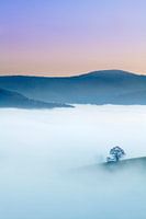 Individuele Bauam in de mistzee, Schauinsland, Zwarte Woud