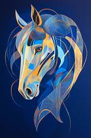 Met levendige blauwe tinten en zachte gouden accenten straalt het artistieke paardenportret kracht en elegantie uit. De dynamische lijnen en het expressieve paardengezicht trekken ieders aandacht. Perfect voor een woonkamer, het creëert een harmonieuze sfeer en moedigt conversatie aan.