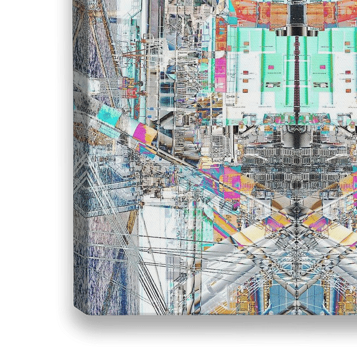 Industrialisation nr. 2 is een abstract werk gemaakt van een foto in een haven. Schepen en kranen allemaal gevangen in een psychedelische wereld. Welkom in de machine?
