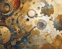 Industrieel Abstract - Dit kunstwerk betovert met zijn speelse interpretatie van mechanische radertjes en tandwielen, badend in een scala van warme, aardse tinten en vleugen metallic accenten. De stoere esthetiek komt prachtig samen in een abstract en toch bevattelijk geheel, waardoor het een intrigerende aanvulling is op zowel moderne als industriële ruimtes.