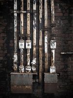 Verweerde elektriciteit buizen in een industriële locatie. Mooie verweerde tinten waar de sfeer van verloren tijden vanaf straalt.