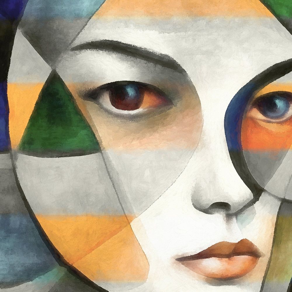 Mijn interpretatie heeft een conceptueel karakter; de verschillende karaktertrekken of zelfs persoonlijkheden in een persoon als abstracte collage.