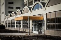 De oude ingang van één van de gebouwen van de hoger rug op Strijp-S in Eindhoven