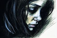 Deze gecombineerde digitale tekening van houtskool en kleurpotloden toont een verlegen en verdrietig meisje dat naar beneden kijkt. De combinatie van houtskool en kleurpotloden geeft het beeld een unieke textuur en diepte. De schaduwvlakken van de houtskool geven de melancholie en terughoudendheid van het meisje weer, terwijl de zachte…