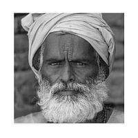Door dit portret niet in kleur, maar in zwart-wit weer te geven, worden we niet afgeleid door de kleur van zijn dastar (hoofddoek) en is…