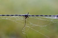 Ingepakt prikkeldraad in ochtend dauw