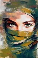 Dit grof geschilderde kunstwerk is werkelijk uniek in zijn soort. Op het doek is het gezicht van een jonge vrouw te zien, gewikkeld in een doek met verschillende tinten groen. Het gezicht is gedeeltelijk zichtbaar, maar toch blijft er veel aan de verbeelding over. Het schilderij is ruw en grof geschilderd, waardoor er veel diepte en textuur ontstaat. De verschillende tinten groen zorgen voor een mooie kleurschakering en een zekere rust. Het geheel heeft iets mysterieus en intrigerends, wat de kijker uitnodigt om langer te blijven kijken en zich te laten meevoeren in de wereld van de kunstenaar. Dit schilderij zal zeker een mooie toevoeging zijn aan elke kunstcollectie en zal een echte eyecatcher zijn in elk interieur.
