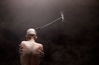 De kale huid van de vrouw, gecombineerd met het delicate paardenbloemzaadje, vormt een visueel poëtisch contrast dat de kijker uitnodigt tot reflectie. De subtiliteit van de compositie benadrukt de kracht en veerkracht van de menselijke geest, zelfs in kwetsbare momenten. Het zaadje, symbool van groei en nieuwe mogelijkheden, rust zacht op haar huid, klaar om weg te vliegen en een nieuwe reis te beginnen.
