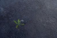 Een detailopname van een plantje in het ijs. Het leverde wat kleur op in het blauw-grijze oppervlak. Mooie structuren levert dat op: structure of nature