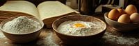 Een gezellige uitnodiging tot de wereld van het bakken: meel en eieren harmoniëren in warme houttinten, terwijl een opgeklopt recept wacht om ontdekt te worden. De geur van versgebakken lekkernijen zweeft door de kamer. Dit kunstwerk is ideaal voor in de keuken, waar liefde en creativiteit elkaar ontmoeten tijdens het koken.