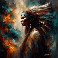 Vier de kracht en schoonheid van Indiaanse vrouwen met dit boeiende portret. Dit kunstwerk eert hun diepe verbondenheid met het land en hun onschatbare bijdragen aan hun gemeenschappen.