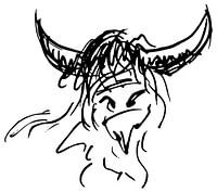 Getekend met pen - digitaal omgezet naar hoge resolutie. Stoer abstract ontwerp van schotse hooglander in zwart wit. Past in een modern interieur. Een ondergrond die middengrijs of donkerder is zorgt voor een fraai contrast.