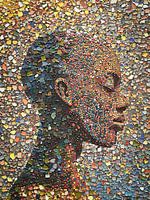 Een levendig en gedetailleerd kunstwerk dat met een mozaïektechniek een menselijk profiel tot leven brengt. De kleurrijke, getextureerde fragmenten symboliseren de complexiteit en schoonheid van de menselijke identiteit. Een dynamisch en fascinerend middelpunt dat elke ruimte verrijkt.