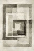 Dit werk speelt met gelaagdheid en ritme in een geometrische opstelling die zich naar binnen toe vouwt. Rechthoekige vormen bouwen voort op elkaar en creëren een subtiel diepte-effect, waarbij korrelige texturen en ruwe randen het geheel een ambachtelijk karakter geven. De opeenvolging van vierkanten roept een gevoel op van introspectie — als een architectonische meditatie in lagen.