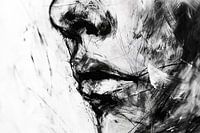 Deze digitale houtskooltekening toont het onderste deel van een ongelukkig mannengezicht. De sombere houtskool arceringen geven de ernst weer van het innerlijke conflict dat de man ervaart. De lijnen en arceringen benadrukken de diepte van de emotie en brengen een gevoel van verdriet en ontevredenheid over. De afbeelding concentreert…