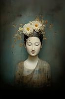 Dit portret toont een vrouw met gesloten ogen en bloemen in haar haar. De combinatie van zachte kleuren en natuurlijke details geeft het werk een kalme en evenwichtige uitstraling. Een schilderij dat goed tot zijn recht komt in een ruimte waar ontspanning en eenvoud centraal staan.