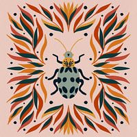 Breng een vleugje natuur naar je interieur met deze charmante illustratie van een insect en bladeren. De combinatie van insecten en bloemen geeft elke ruimte een grillig en levendig gevoel. Perfect voor liefhebbers van unieke en speelse ontwerpen!