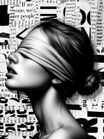 Samen vormen ze het geblinddoekte portret van een vrouw, blind en doof voor dingen die gezegd en geschreven zijn...