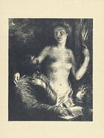 Het model staat topless naast de artiest waardoor van de meid de buik, torso en borsten bloot zijn op het portret.