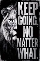 Deze krachtige en inspirerende afbeelding combineert de wilde majesteit van een leeuw met een krachtige boodschap: Keep Going, No Matter What. In zwart-wit weergegeven, biedt dit kunstwerk een intrigerend contrast tussen de gedetailleerde weergave van het leeuwengezicht en de gedurfde typografie. Het ontwerp is perfect voor in huis of…