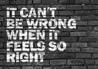 Het kan niet verkeerd zijn, als het zo goed voelt. Geweldige zwarte en witte graffiti. Sta achter jezelf en je gevoelens. Geweldig cadeau in een partnerschap.