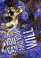 Geloof dat je het kunt en zult. Geweldige tekst ontwerp inspirerend voor uw huis. Een met de hand getekende gemarmerde achtergrond in roze en grijs.