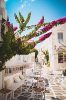 Op het Griekse Paros sieren dit soort traditionele straatjes het eiland. Prachtige roze Bougainvillea, gezellige en knusse terrasjes, witgekalkte huizen en stapstenen. Dit geeft je direct een fijn vakantiegevoel!