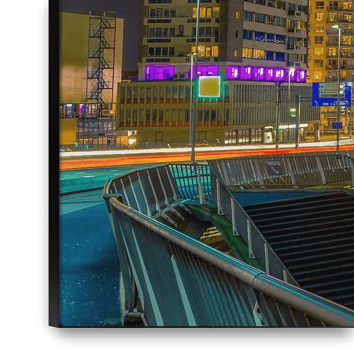 Koop de Rotterdam foto Intel Hotel vana Erasmusbrug van Michael van der Burg op canvas, aluminium dibond, (ingelijste) fotoprint, behang en ArtFrame, op maat geprint in Fine-Art kwaliteit.