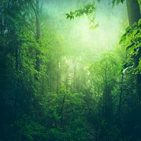 Koop de foto Intens groen loofbos op een wazige zomerochtend van Dirk Wüstenhagen op canvas, aluminium dibond, (ingelijste) fotoprint, behang en ArtFrame, op maat geprint in Fine-Art kwaliteit.
