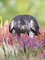 Havik in de paarse heide