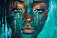 Een indrukwekkend portret dat een diepe expressie en emotionele diepte belichaamt. De levendige kleuren en fascinerende gelaatstrekken boeien de kijker. Perfect voor een stijlvolle woonkamer, waar het een gesprek kan stimuleren en als inspirerend hoogtepunt kan fungeren. Ideaal om een sfeer van creativiteit en intensiteit te creëren.