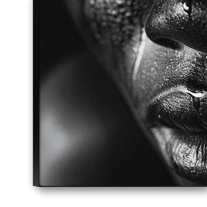 Dit krachtige zwart-wit portret vangt een diep emotioneel moment. Het beeld toont een gezicht gehuld in een spel van licht en schaduw, waar elke druppel en lijn een verhaal van intense gevoelens vertelt. De tranen die over het gezicht stromen, versterken de rauwe emotie die in dit kunstwerk gevangen is. Het minimalistische karakter en het realistische detail maken dit ontwerp een perfecte aanvulling voor moderne interieurs. Het werk straalt zowel kracht als kwetsbaarheid uit, waardoor het een boeiende aanvulling is voor elke ruimte, of het nu een slaapkamer, eetkamer of kantoor is. Het is een kunstwerk dat uitnodigt tot reflectie en diepe gedachten.
