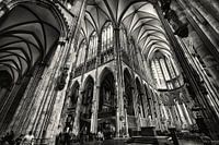 Groothoek opname van het interieur van de Dom in Keulen.