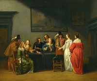Interieur met figuren speelkaarten, Christoffel Jacobsz. van der Laemen
