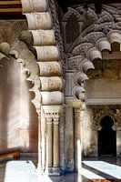 Hal en interieur met geschulpte Moorse bogen in het Arabische Aljaferia paleis, Unesco Werelderfgoed, in Zaragoza, Aragon, Spanje