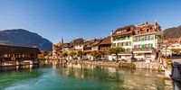 De Aare en de oude stad Interlaken, Berner Oberland, Zwitserland.