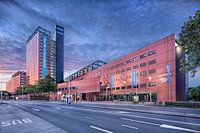 Koop de foto Interpolis hoofdkantoor Tilburg bij schemering met een paarse hemel van Tony Vingerhoets op canvas, aluminium dibond, (ingelijste) fotoprint, behang en ArtFrame, op maat geprint in Fine-Art kwaliteit.