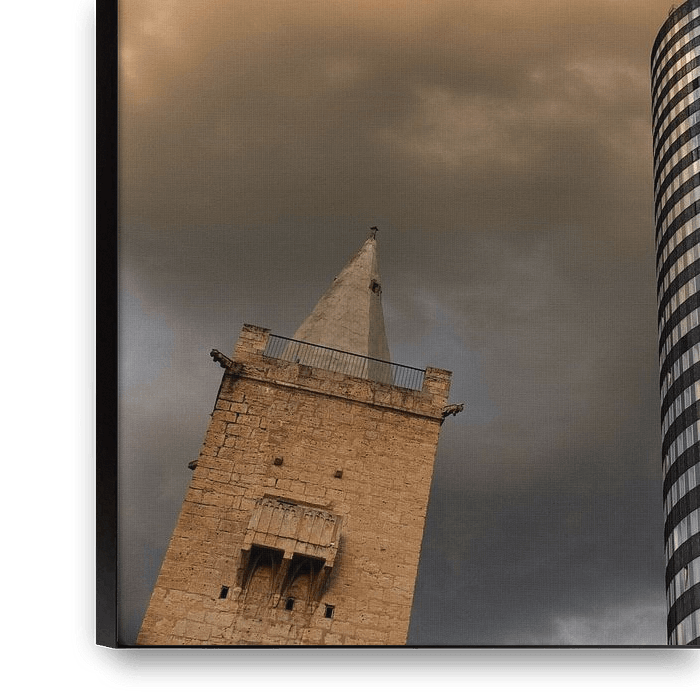 Koop dit moderne kunstwerk Intershoptoren en oude stadsmuur in Jena van Wolfgang Unger op canvas, aluminium dibond, (ingelijste) fotoprint, behang en ArtFrame, op maat geprint in Fine-Art kwaliteit.