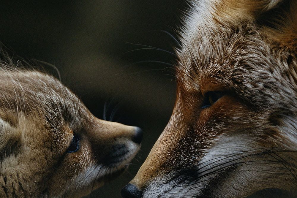 Dit prachtige ontwerp toont een intiem moment tussen een volwassen vos en een babyvos. Het gedetailleerde beeld vangt de liefdevolle blik die ze met elkaar delen, wat een gevoel van tederheid en verbondenheid uitstraalt. De warme kleuren en de nauwkeurige details van hun vacht maken het een perfect kunstwerk voor liefhebbers van dieren en natuur. Dit kunstwerk zal prachtig staan in een kantoor of slaapkamer, waar het rust en warmte kan brengen in de ruimte. Het is een tijdloze toevoeging aan elk interieur, en een eerbetoon aan de schoonheid van de natuur.
