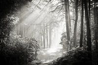 Magisch zonlicht schijnt door een bos in Brandenburg.