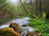 Deze foto werd genomen in Cérilly op een idyllisch rustpuntje in het bos, waar de rivier zich langs een paar grote stenen moet wurmen.