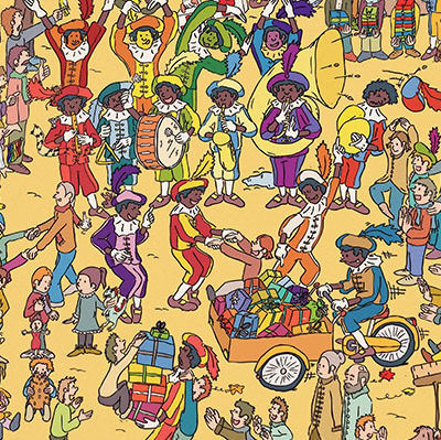 Zoekplaat met als thema intocht van Sinterklaas. Hoge kwaliteit tekening en met de computer ingekleurd.