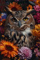 Koop dit bloemen kunstwerk Intrigerende Uil omringd door Kleurrijke Bloei van Art & Soul Creations als print op canvas, aluminium dibond, (ingelijste) fotoprint, behang en ArtFrame. Voor jou op maat geprint in Fine-Art kwaliteit.