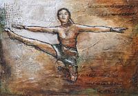 Danseres in de spotlights, ga met de flow van de muziek. Geïnspireerd door mijn dochters dansend op een podium, ze voelen de muziek en reageren erop. Ik hoop dat men de sereniteit van het werk zien en voelen en dat misschien kunnen meenemen in het dagelijks leven.