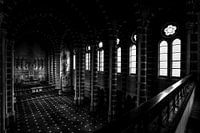 Foto van invallend licht via de ramen in een kapel van een verlaten klooster